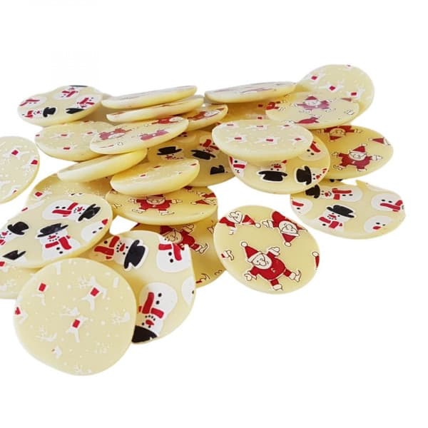Whether you're treating yourself or showing your affection to others, our Large White Chocolate Buttons embody the epitome of exquisite taste and festive cheer. Place your order now and indulge in the divine pleasure of white chocolate adorned with charming designs for the holiday season.