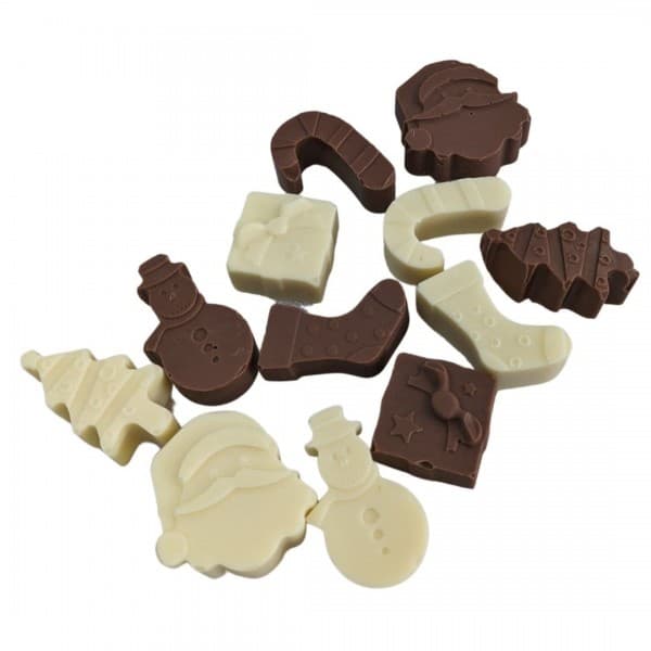 Enjoy the holiday spirit with our Milk and White Chocolate Christmas Shapes.